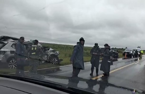 Las autoridades sostienen que las malas condiciones climticas fueron determinantes en el siniestro. La lluvia intensa y la falta de visibilidad habran provocado que uno de los conductores perdiera el control, desencadenando el impacto.