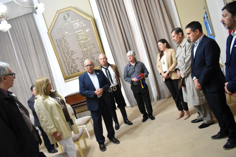 Al comenzar la jornada lluviosa, en una ceremonia cargada de simbolismo que tuvo lugar en el Salón Dorado de la Municipalidad, el intendente, José Irigoyen tuvo el honor de recibir al presidente del prestigioso Instituto Belgraniano de las Misiones, Juan Carlos Ramírez Gattolin, una institución dedicada a preservar y difundir el legado del fundador, quien en un gesto de profundo hermanamiento belgraniano, entregó a la ciudad dos tesoros de incalculable valor histórico: una copia del Reglamento para los Pueblos de las Misiones, redactado por el propio puño del prócer poco después de fundar Curuzú Cuatiá, y un plano de las rutas que el Creador de la Bandera de la Nación recorrió en la región.