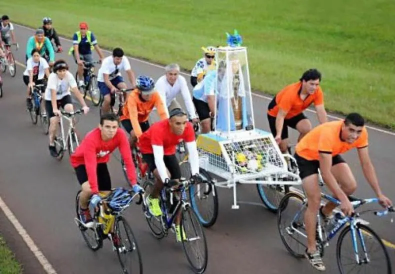 Como en los últimos años, el colorido lo ponen los ciclistas que llegan de la ciudad de Posadas y otros puntos de la región. Hoy, a las 19, se prevé la misa central presidida por el arzobispo de Corrientes, José Adolfo Larregain, en la que además se realizará la primera comunión de niños.
