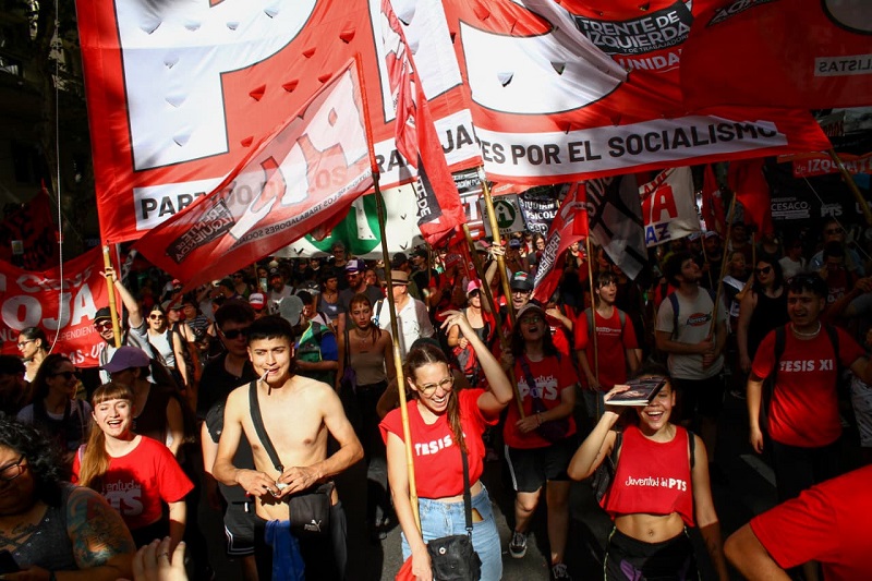 Dentro de la convocatoria independiente, así marchó la columna del PTS a Plaza de Mayo exigiendo paro nacional y plan de lucha contra la reforma laboral. pic.twitter.com/DbFnS2uTzV