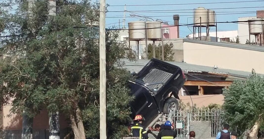 Una camioneta Toyota Hilux totalmente descontrolada derrapó por una de las principales avenidas de Comodoro Rivadavia, en Chubut y terminó «colgada» de la reja de una casa. Un hombre y una mujer que iban en el vehículo debieron ser hospitalizados tras el incidente: están fuera de peligro.