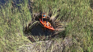 Búsqueda y rescate de un cuerpo con Drone, kayak, en móvil, a pie y a caballo
